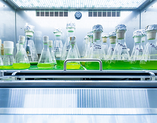Im Biomedizinischen Laborkomplex wird unter anderem der Einsatz von Mikroorganismen zur kreislauforientierten Herstellung von Basischemikalien für die chemische, pharmazeutische, Agrar- und Umweltindustrie adressiert. Dabei setzen wir zunehmend auf die Nutzung phototropher Mikroorganismen für CO2-neutrale und chemikalienfreie Produktionsverfahren. Des Weiteren untersuchen wir elektronenstrahlbehandeltes Saatgut als qualifizierte chemikalienfreie Alternative zum herkömmlichen Saatgutbeizen.